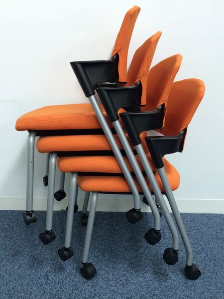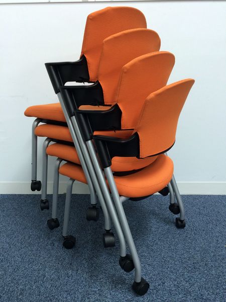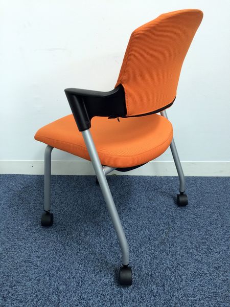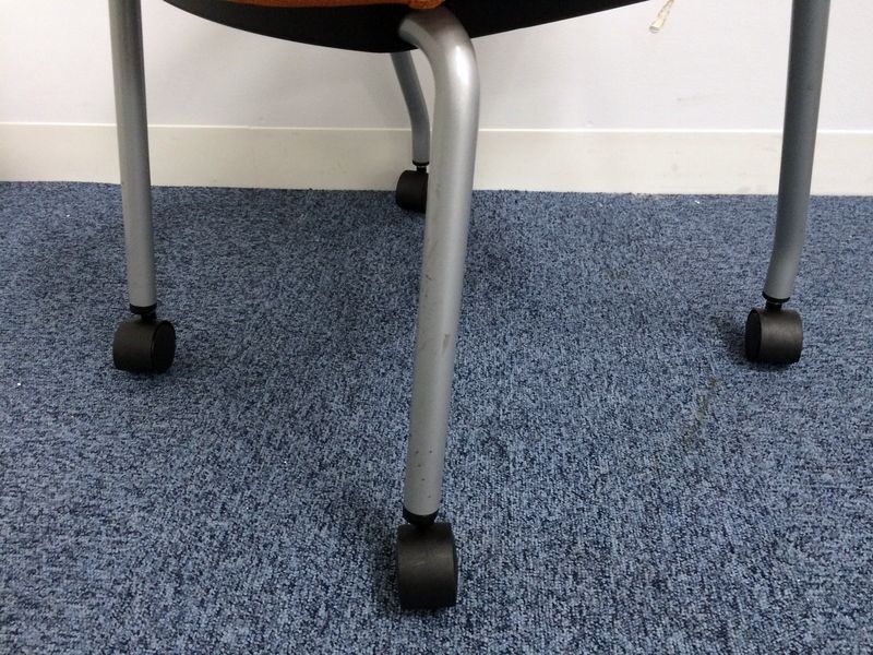 【シンプルスマートなスタッキングチェア!】■コクヨ(KOKUYO) プロッティ(Protty)チェア スタッキングチェア ミーティングチェア ■肘付き キャスター付き ■オレンジ【2505】弊社使用欄【A01018053】