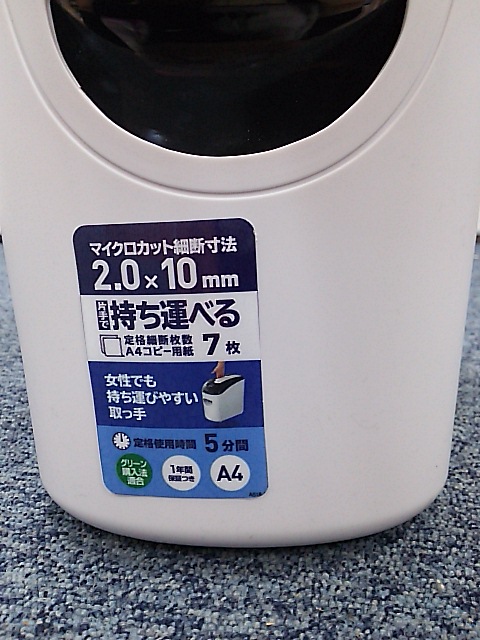 ・最大細断枚数:7枚(A4コピー用紙 50/60Hz)