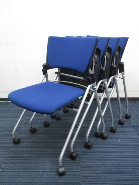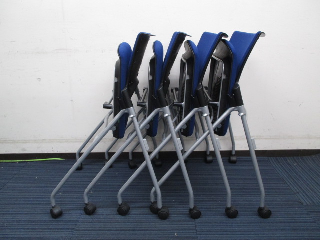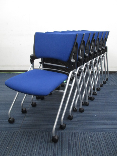 【定番のブルー】 マノスチェア(キャスター付き)|積み重ねずコンパクトに【セット商品】- 日本橋店