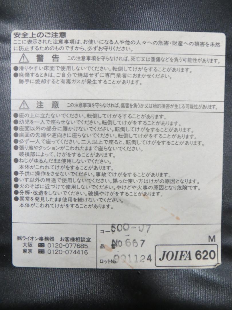 - 若干あり傷・破れ・ほつれ・へたり・しわが一部ある。(例、座面・背もたれ、脚部等にある。)