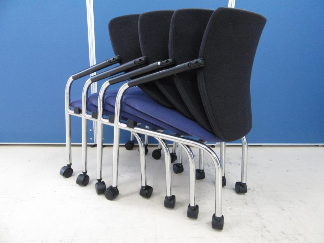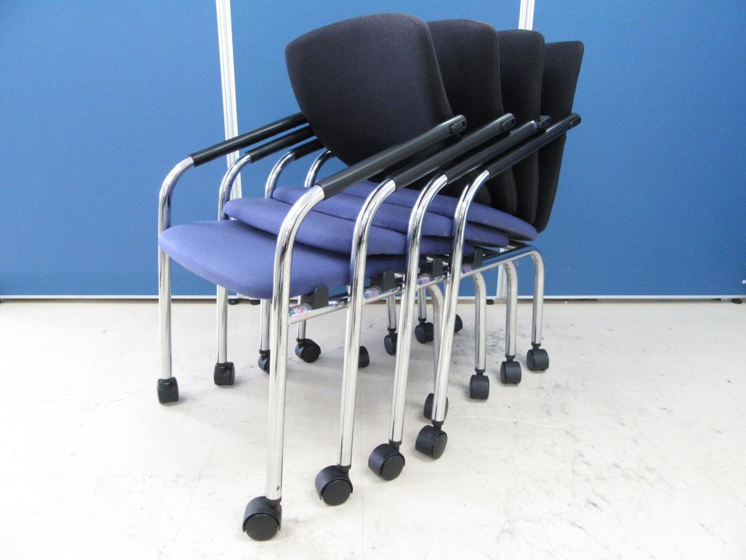 [4脚セット]岡村製作所(okamura) ネスティングチェア■座面を畳んで収納可能!!会議・研修・休憩室用としておすすめ!![状態良好]- 足立・葛飾店