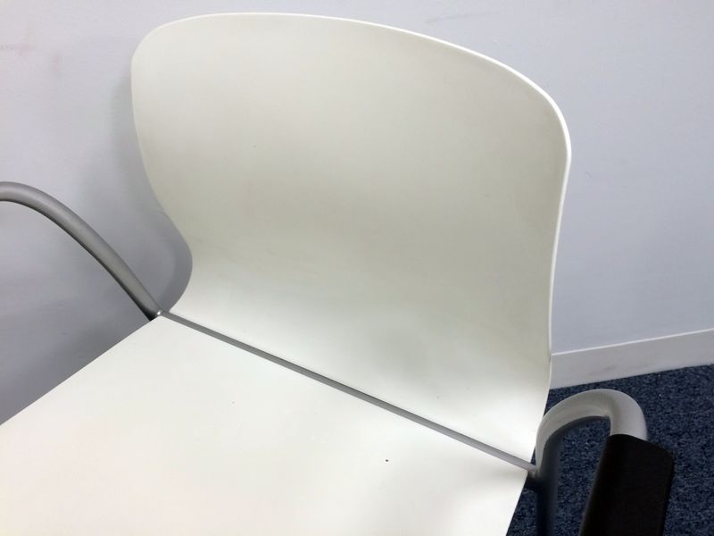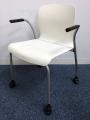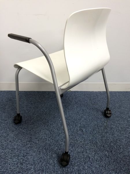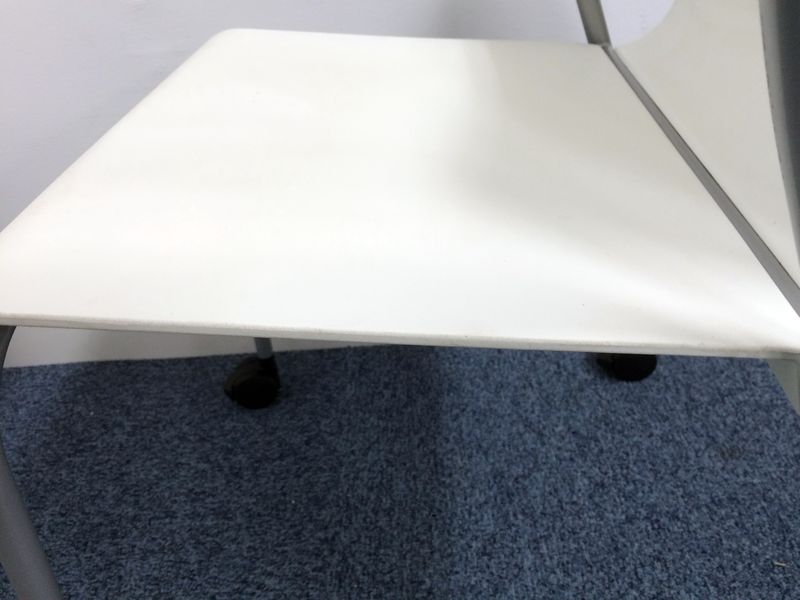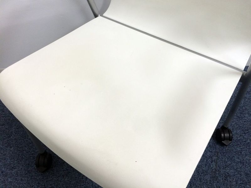 【限定4脚!!】ホワイト色スタッキングチェア!キャスター・肘付- 名古屋千種店
