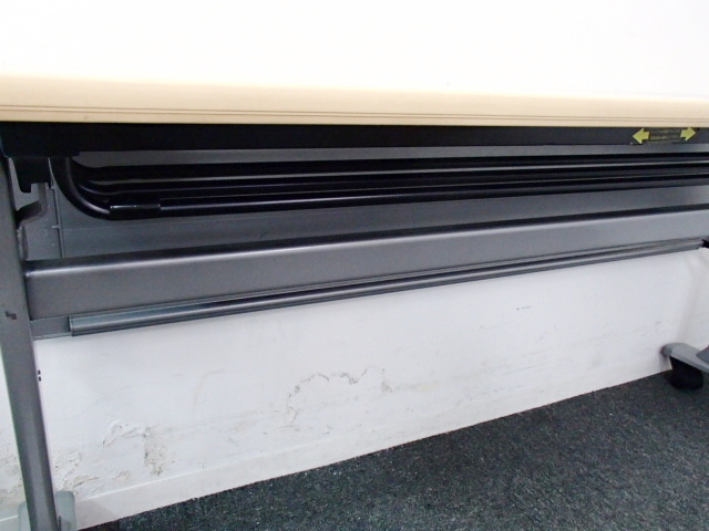 - 一部不具合あり天板歪み、アジャスター無し、キャスター使用不可ようなそのテーブルの本来の効用を果たすための機能以外の一部が使用不可な状態。(例、キャスターロッ ク機能使用不可、棚板無し等がある。)