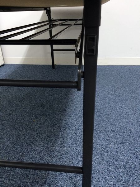 - 一部不具合あり天板歪み、アジャスター無し、キャスター使用不可ようなそのテーブルの本来の効用を果たすための機能以外の一部が使用不可な状態。(例、キャスターロッ ク機能使用不可、棚板無し等がある。)