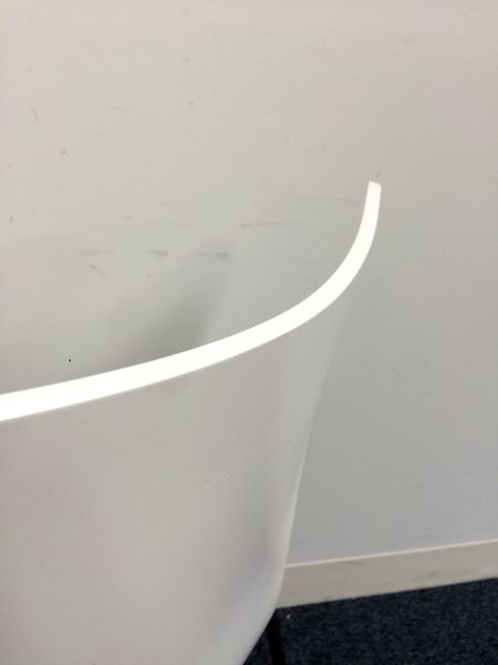 - かなり強い濃い黄ばみ・変色が商品全体にある。(例、座面・背もたれ、脚部等にある。)