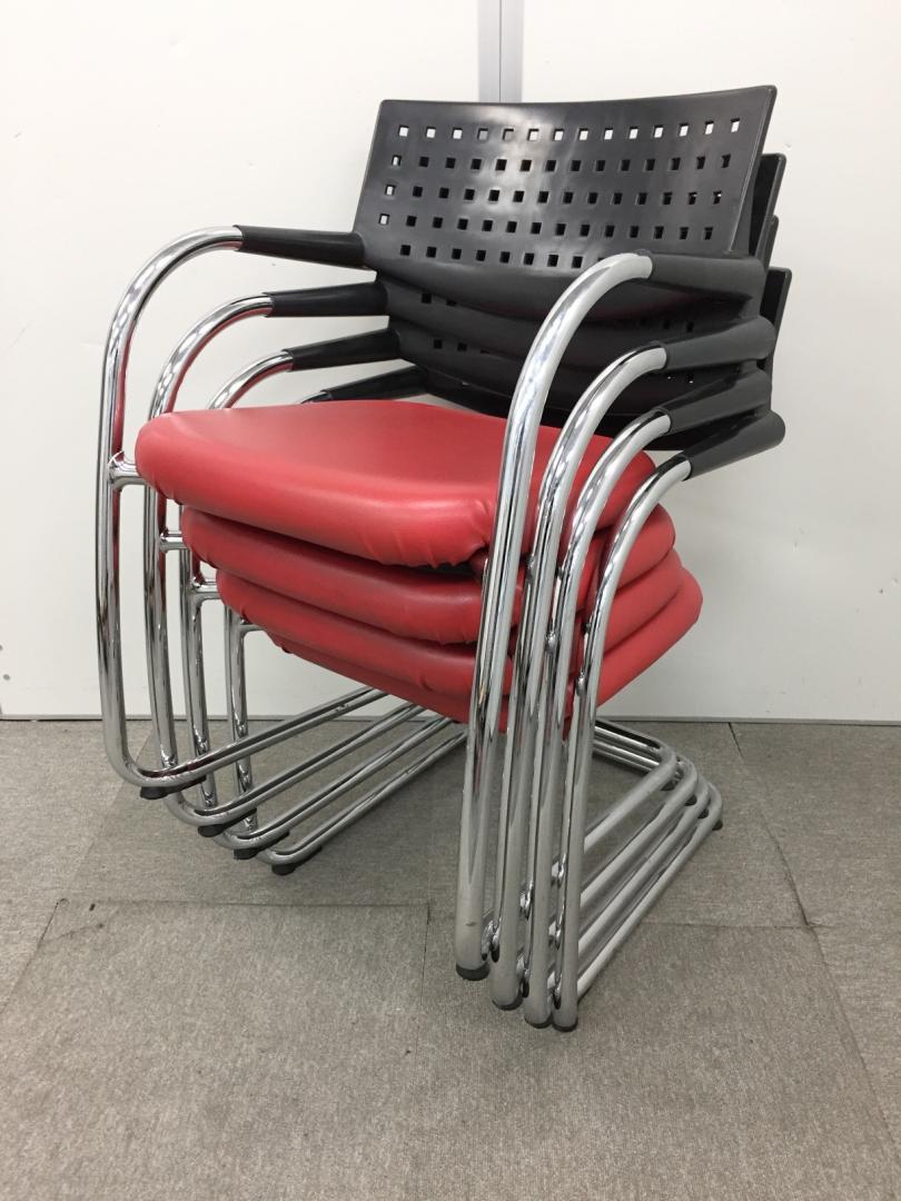 【お得な4脚セット】オシャレな事務所におすすめなブラック&レッドのスタイリッシュ会議用チェア!- 在庫数