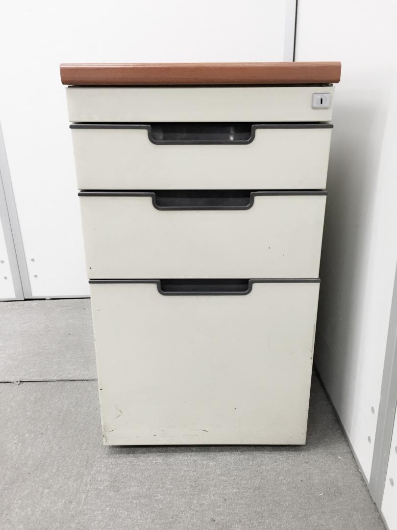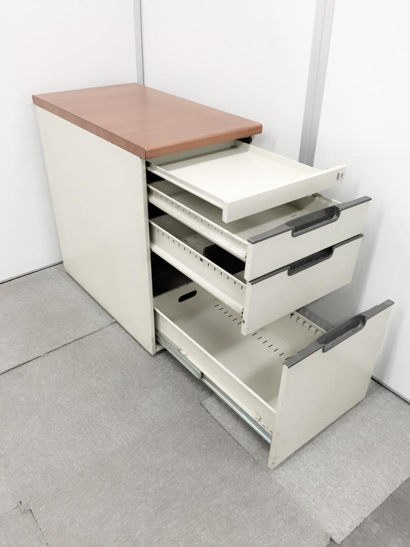 1台限定価格!4段収納できる脇机が入荷!天板が木目カラーのおすすめ品!~鍵なしになります~- 在庫数