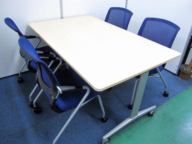 この夏クルーなセット商品 キャスター付の幅広テーブルに人気のミーティングチェアを×4脚付けました。- 品川・三田店