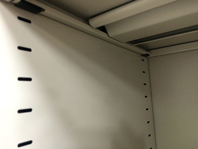 鋼板が厚く耐久性があり、また棚板等の厚みもあり