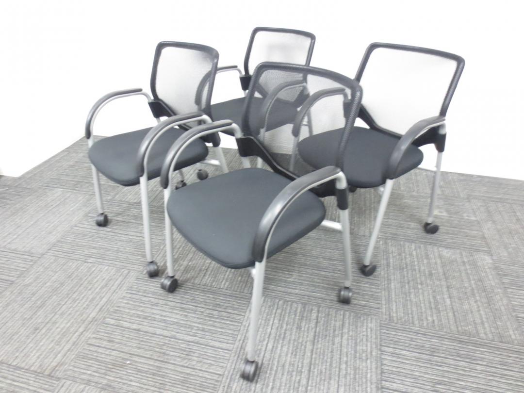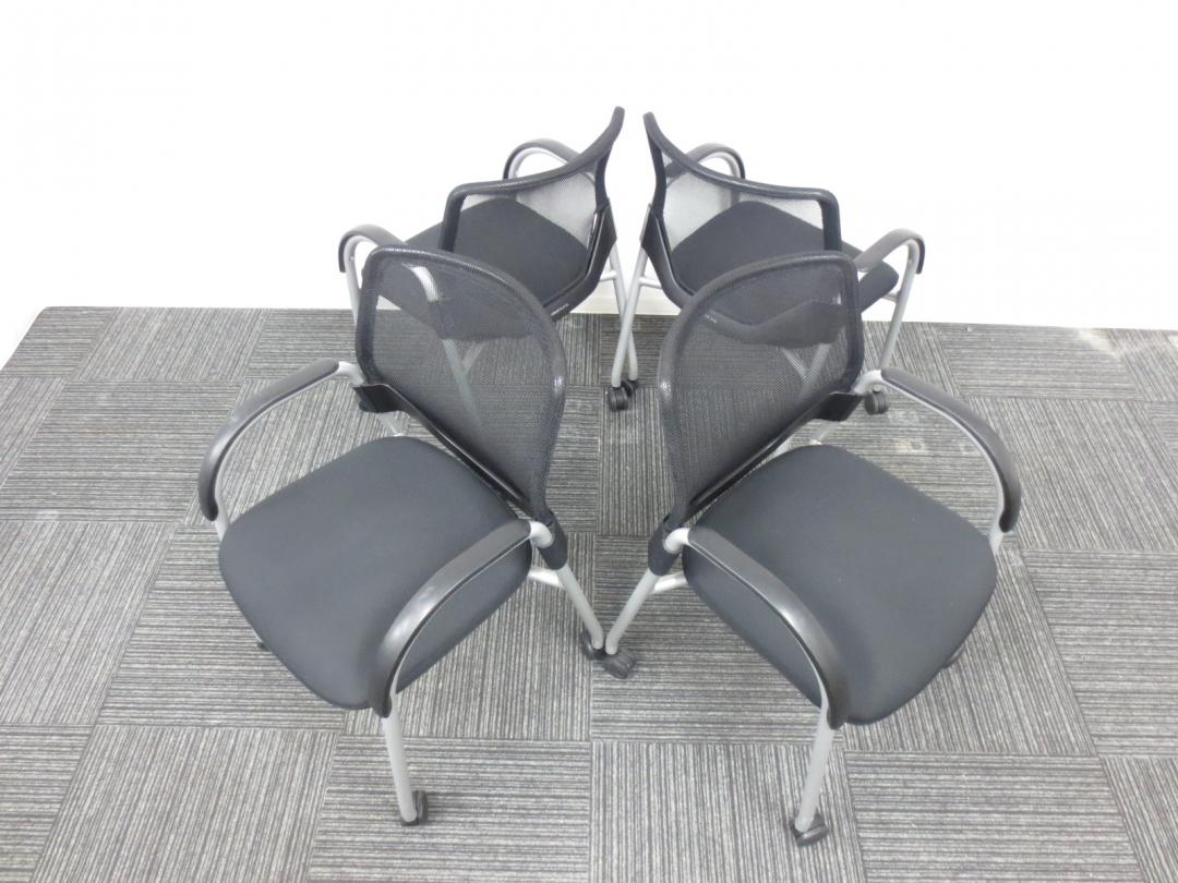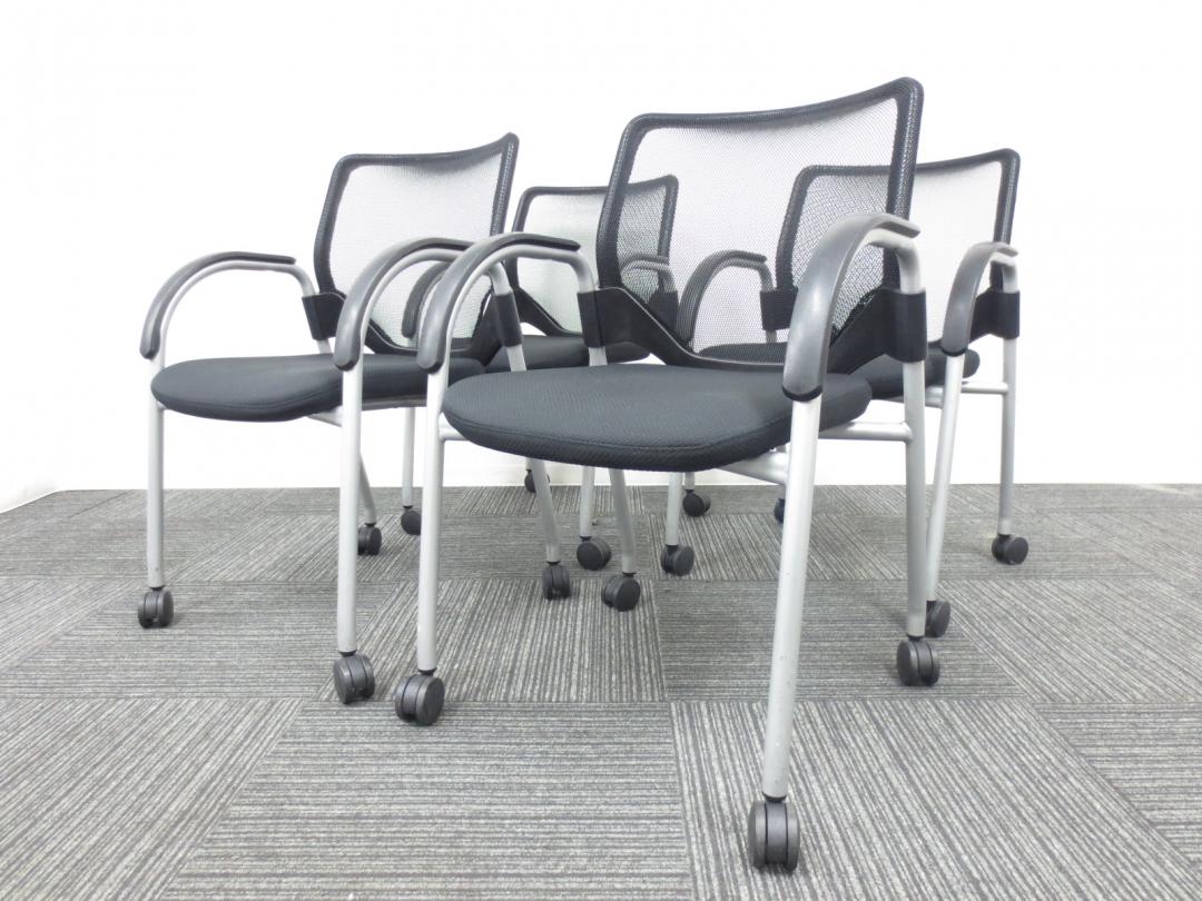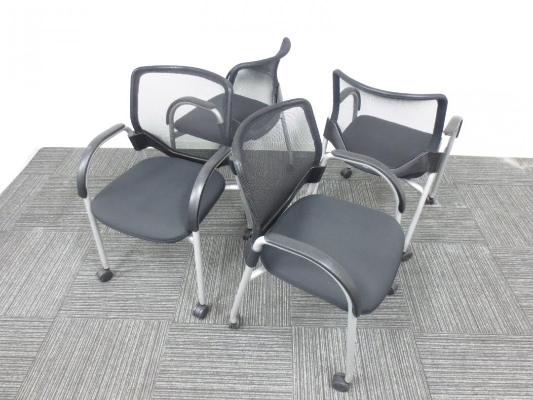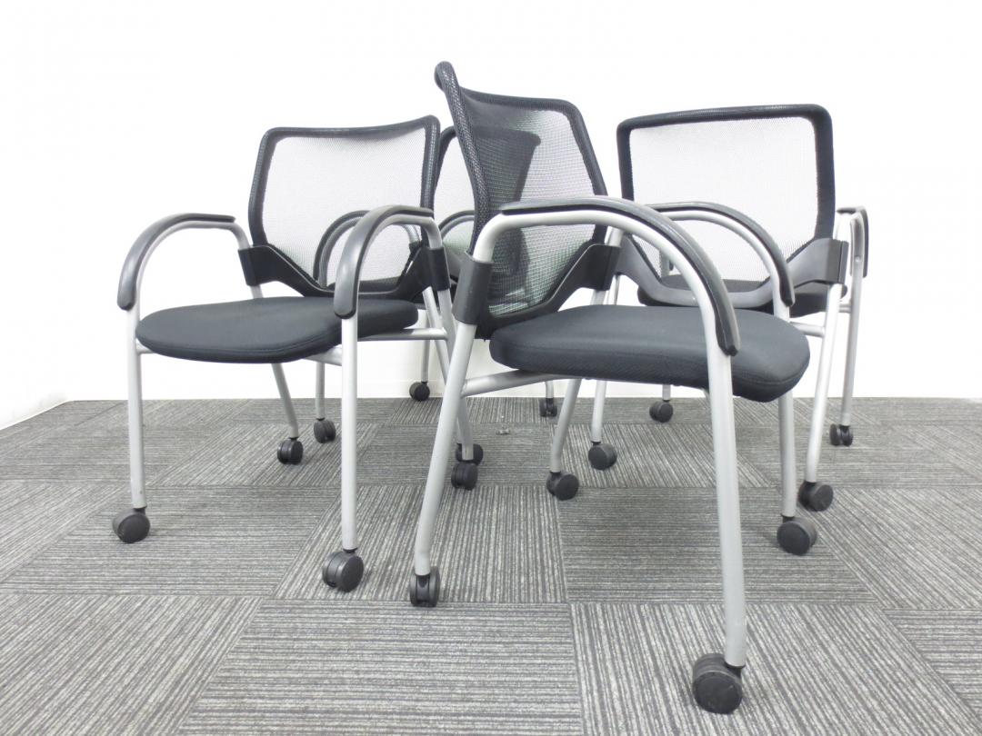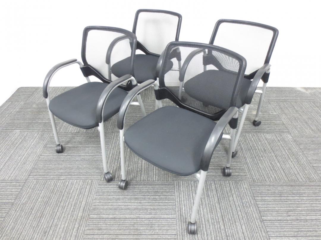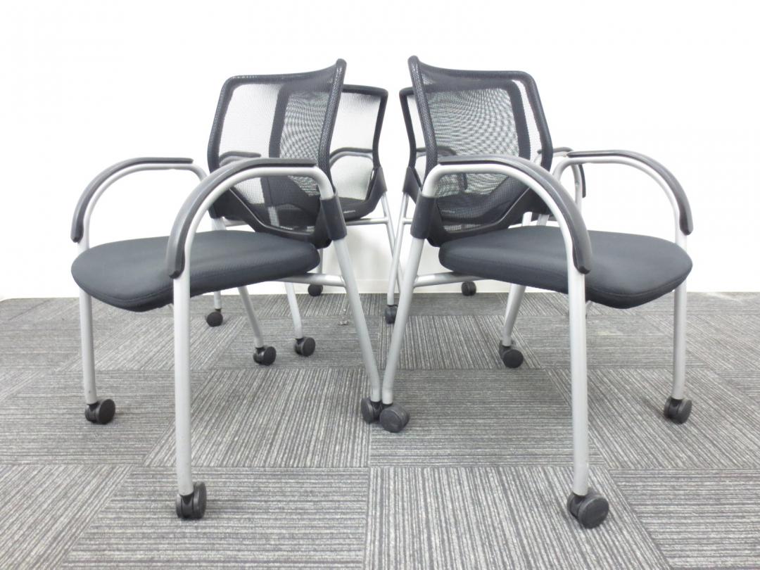 【4脚セット商品】【専門業者によりクリーニング済み】【状態良好】岡村製作所 メッシュミーティングチェア 上下昇降可能なおしゃれチェア【中古オフィスチェア 会議用チェア】- 春日部・越谷店