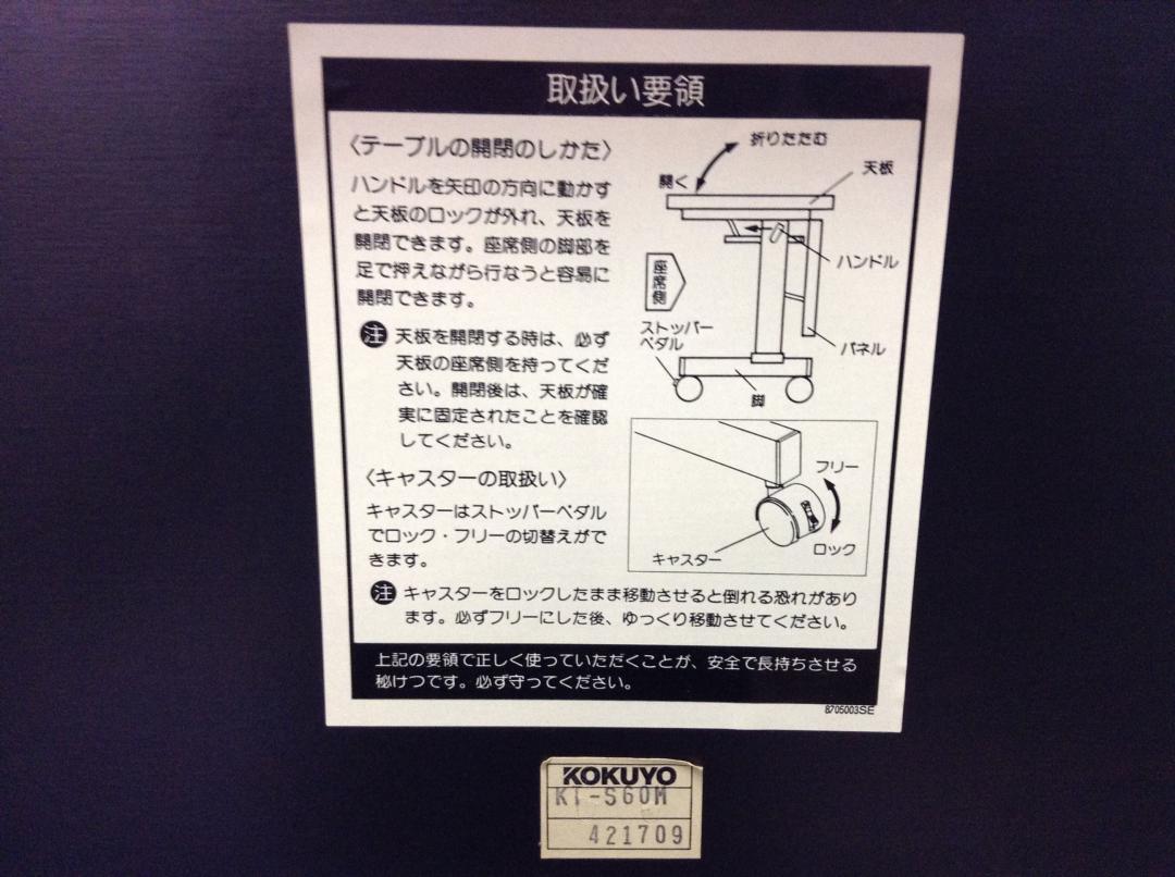 - 一部不具合あり天板歪み、アジャスター無し、キャスター使用不可ようなそのテーブルの本来の効用を果たすための機能以外の一部が使用不可な状態。(例、キャスターロッ ク機能使用不可、棚板無し等がある。)