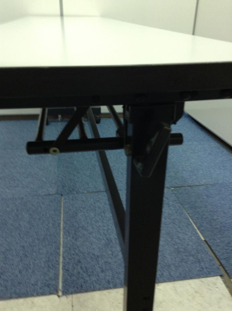 - 壊れている天板歪み、アジャスター無し、キャスター使用不可のようにそのテーブルの本来の効用を果たすための機能に不具合がある。