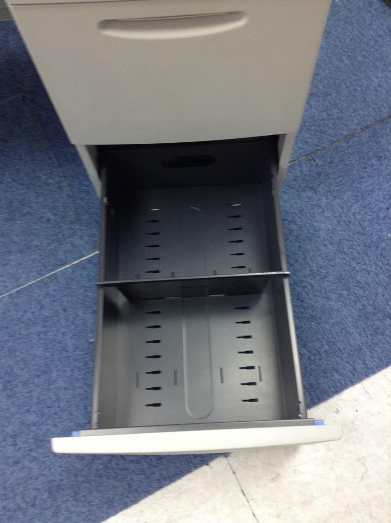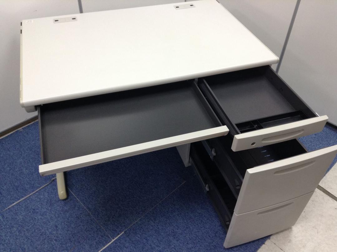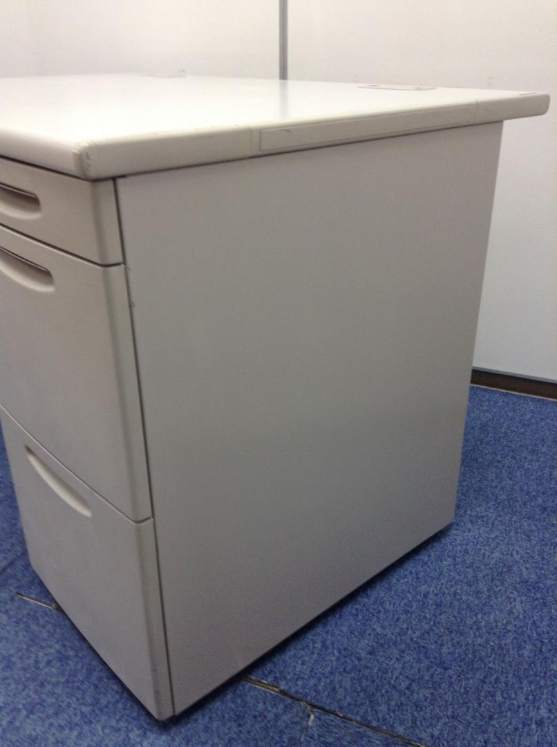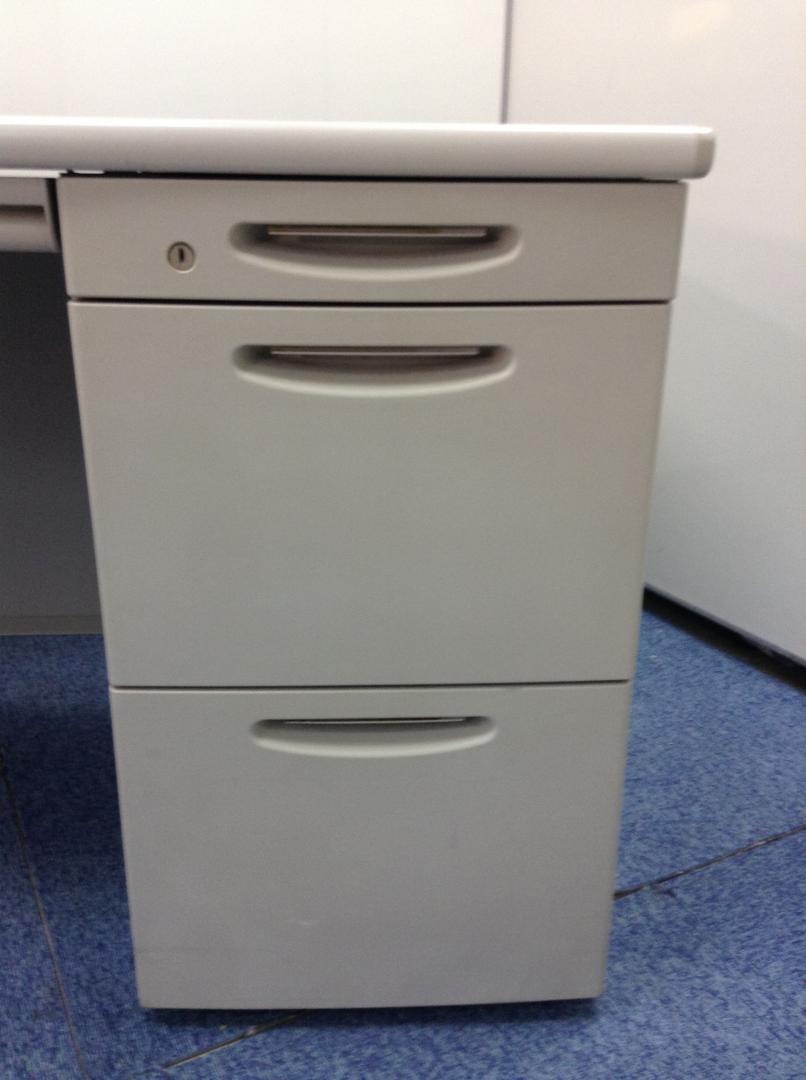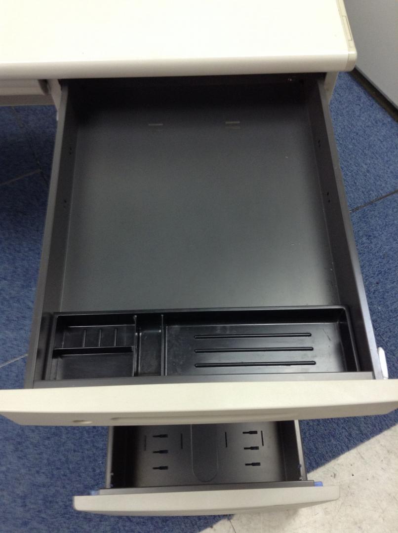 - 袖机のワゴンは、最下段がロング引出しになっており、従来より収納力120%アップ。