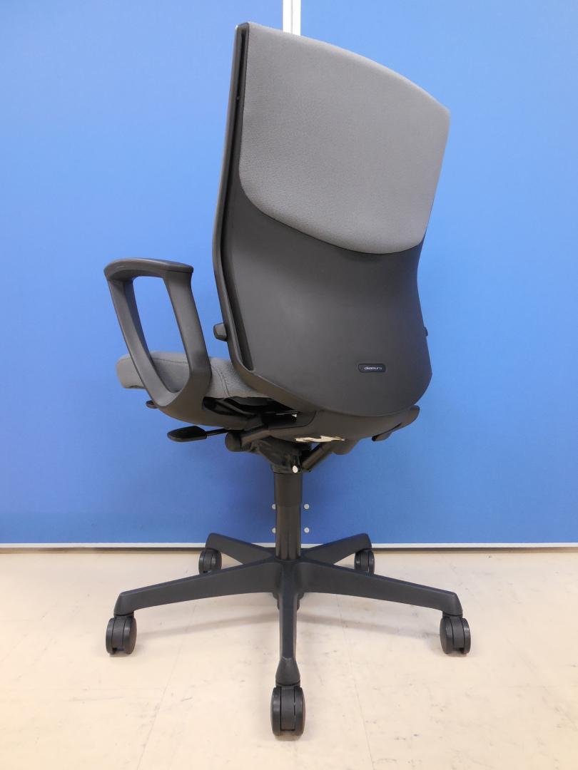 作業中の姿勢はもちろん、座ったまま背伸びをした時には、背もたれが倒れるだけでなく座面部分も連動して動く""アンクルチルトロッキング""機構で心地よく、オカムラの技術が光るチェアです。"