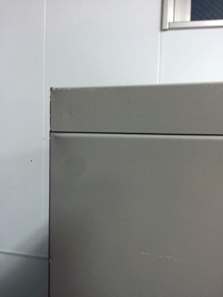 - かなり強い黄ばみ・変色が商品全体にある。(例、天板、正面、背部、サイド部分にある。)