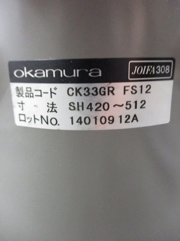 オカムラ製のミドルクラスの中でも非常に人気の高いオフィスチェアの為、