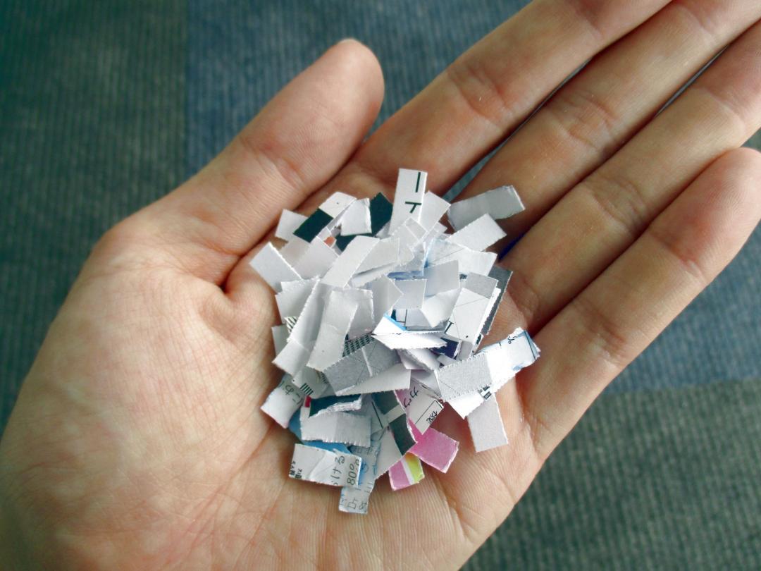 縦切り&横切りによる小さな細断面積で、機密保持を徹底。
