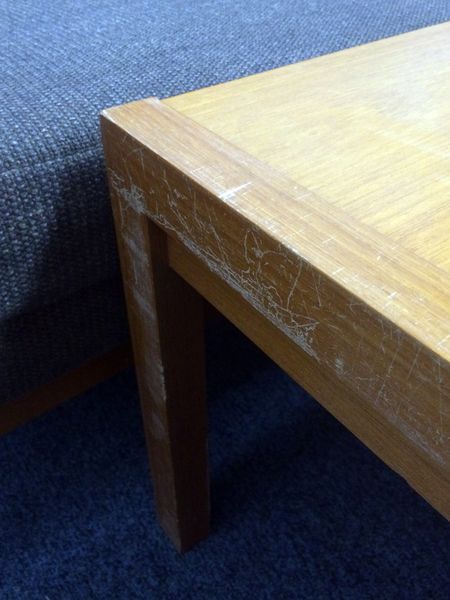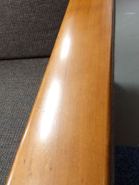 - あり黄ばみ・変色が広い範囲にうっすらある、または濃い黄ばみ・変色が一部ある。(例:三人用ソファ、二人用ソファ、一人用ソファの場合、背もたれ、肘かけ、座面等、 センターテーブルの場合、天板、脚にある。)