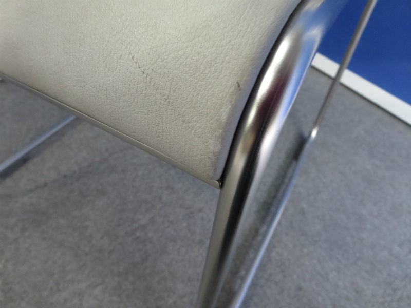 - かなり強い濃い黄ばみ・変色が商品全体にある。(例、座面・背もたれ、脚部等にある。)