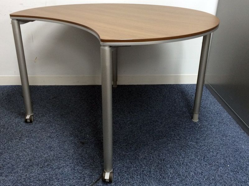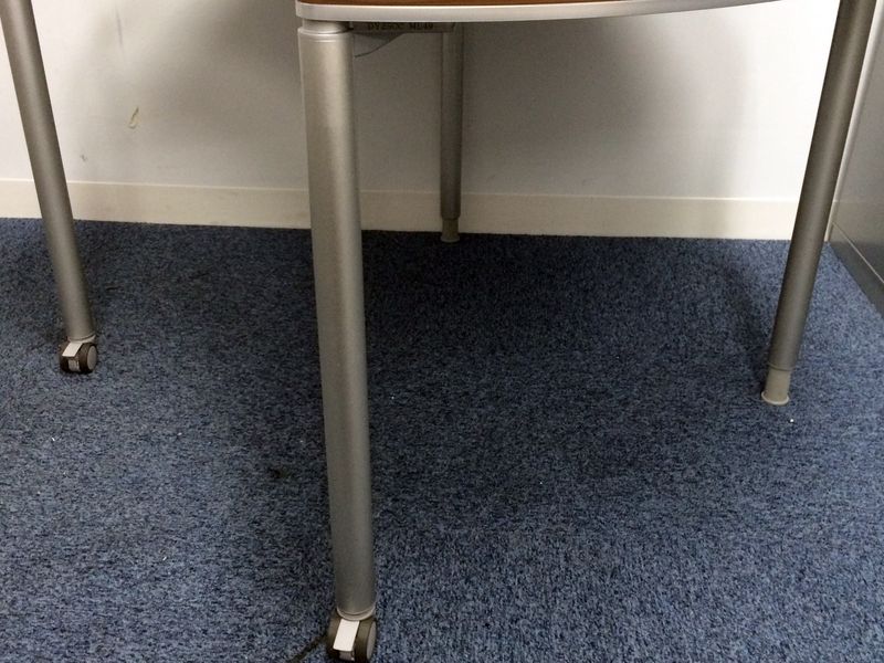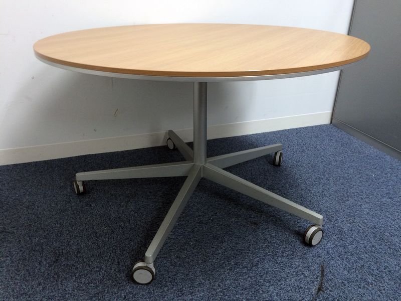 【リフレッシュスペースにもオススメ!】■オカムラ(okamura)製 アプションフリーシリーズ ミーティングテーブル \ ナチュラル木目カラー カイトタイプ 単支柱 【フレキシブルに使えるキャスター付!】