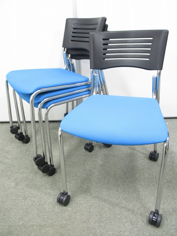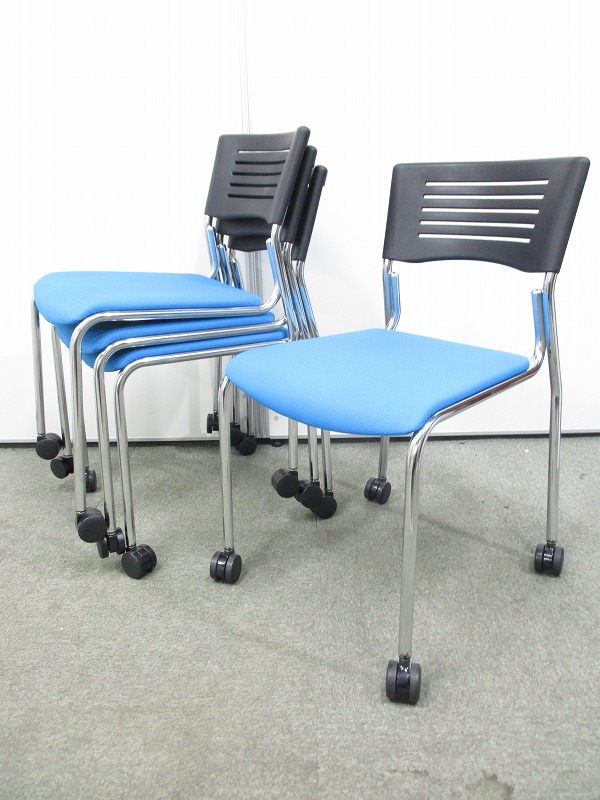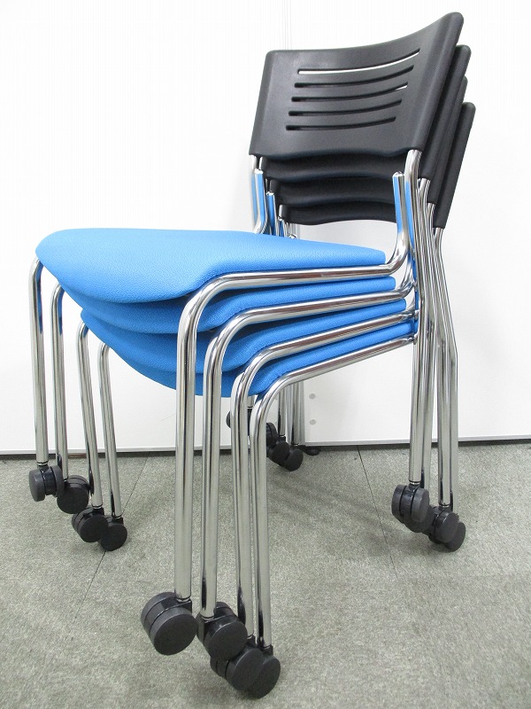 【12脚セット商品】細身でスマートなキャスター付スタッキングチェア!12セットで単品での購入より4000円お安くなっております!- 横浜本店