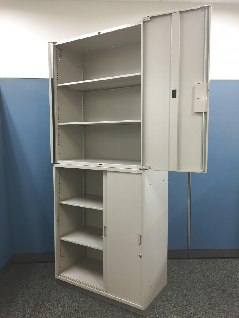 【オフィスの書類をまとめて整理!希少な引き違い+両開き書庫セットが入荷!】■イトーキ(ITOKI)製 シンラインシリーズ 引き違い+両開き 書庫セット ハイキャビネット H2140㎜ ■2枚扉 ■シリンダー錠 ■ニューグレー