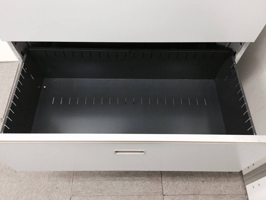 【書類をまとめて整理!引き出し式キャビネット】■イトーキ(ITOKI)製 シンラインシリーズ 3段ラテラル ニューグレー ※取っ手日焼けあり 《オフィスバスターズ福岡博多店は、福岡を拠点として、日本全国へ中古オフィス用品・オフィス家具を提供しております》