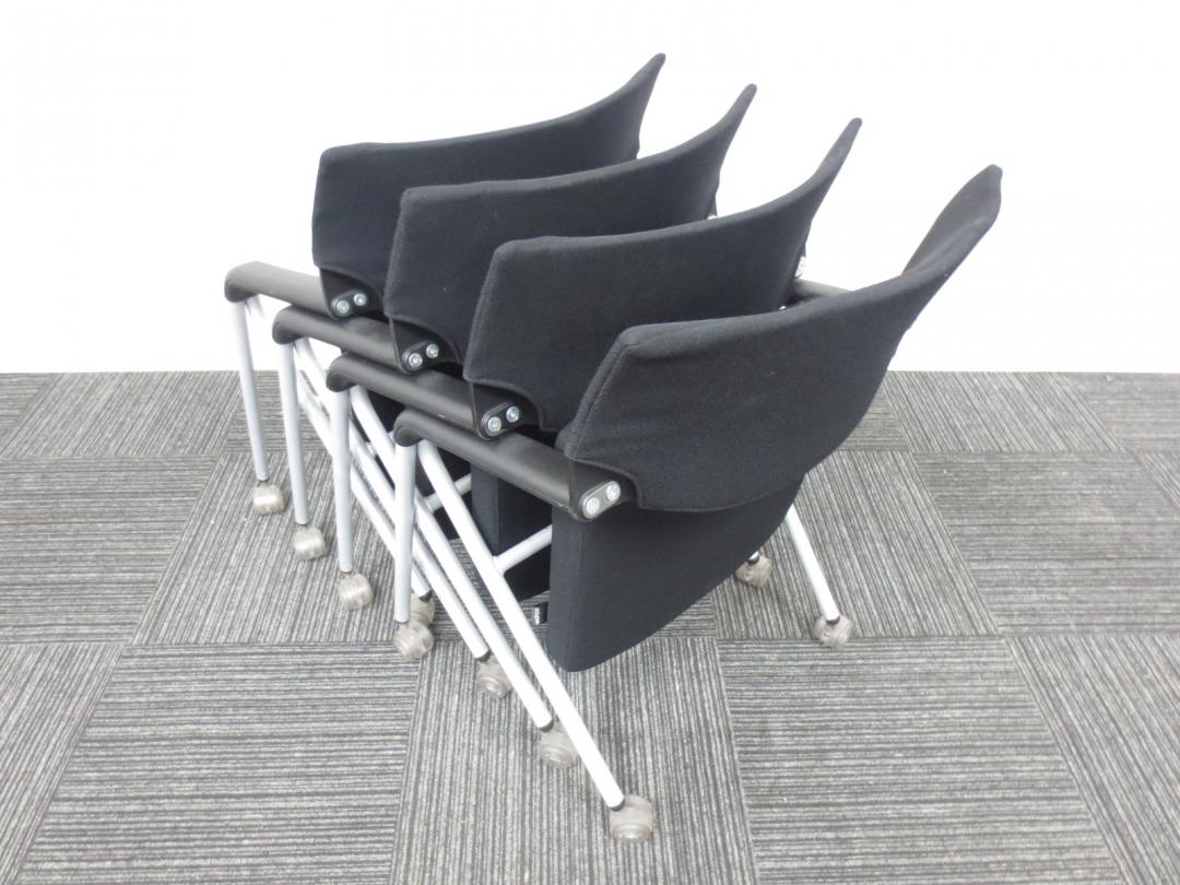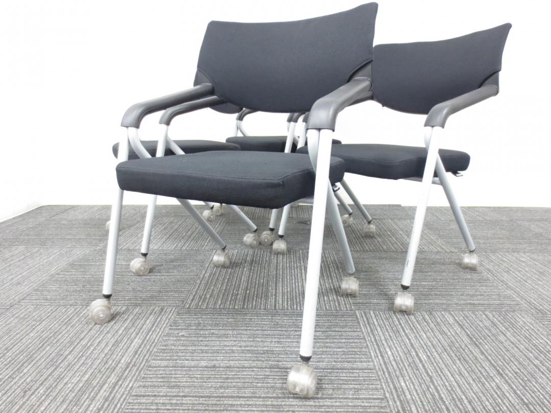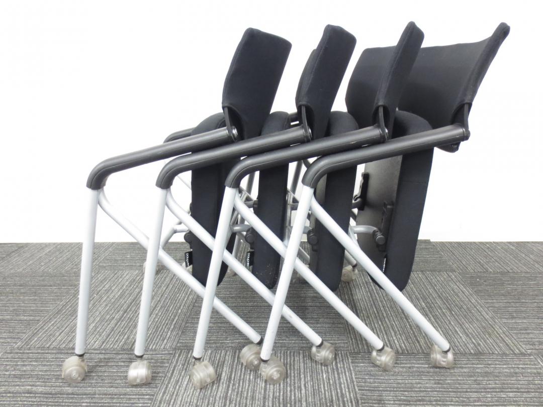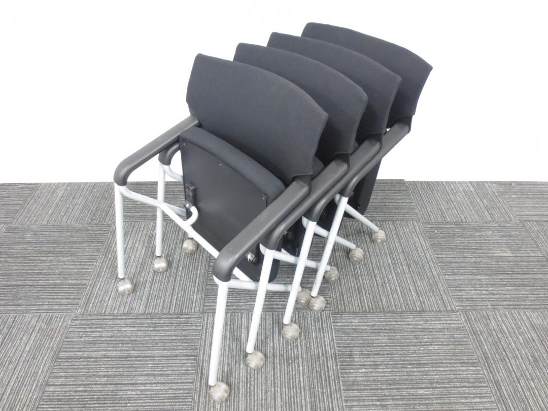 【専門業者によりクリーニング済み】【レア商品!当店一押しのミーティングチェア】Dauphin (ドーファン)製|ネスティングチェア|4脚セット商品【座面が広くゆったりと座れて肘かけ付です】- 春日部・越谷店