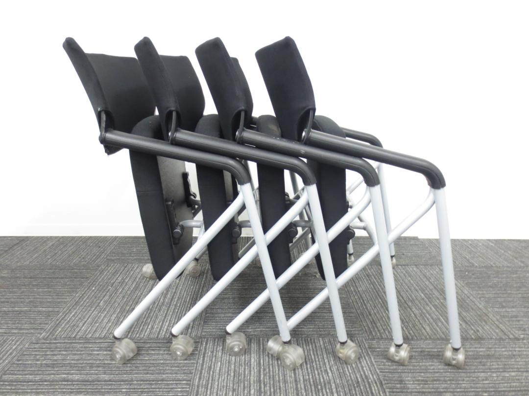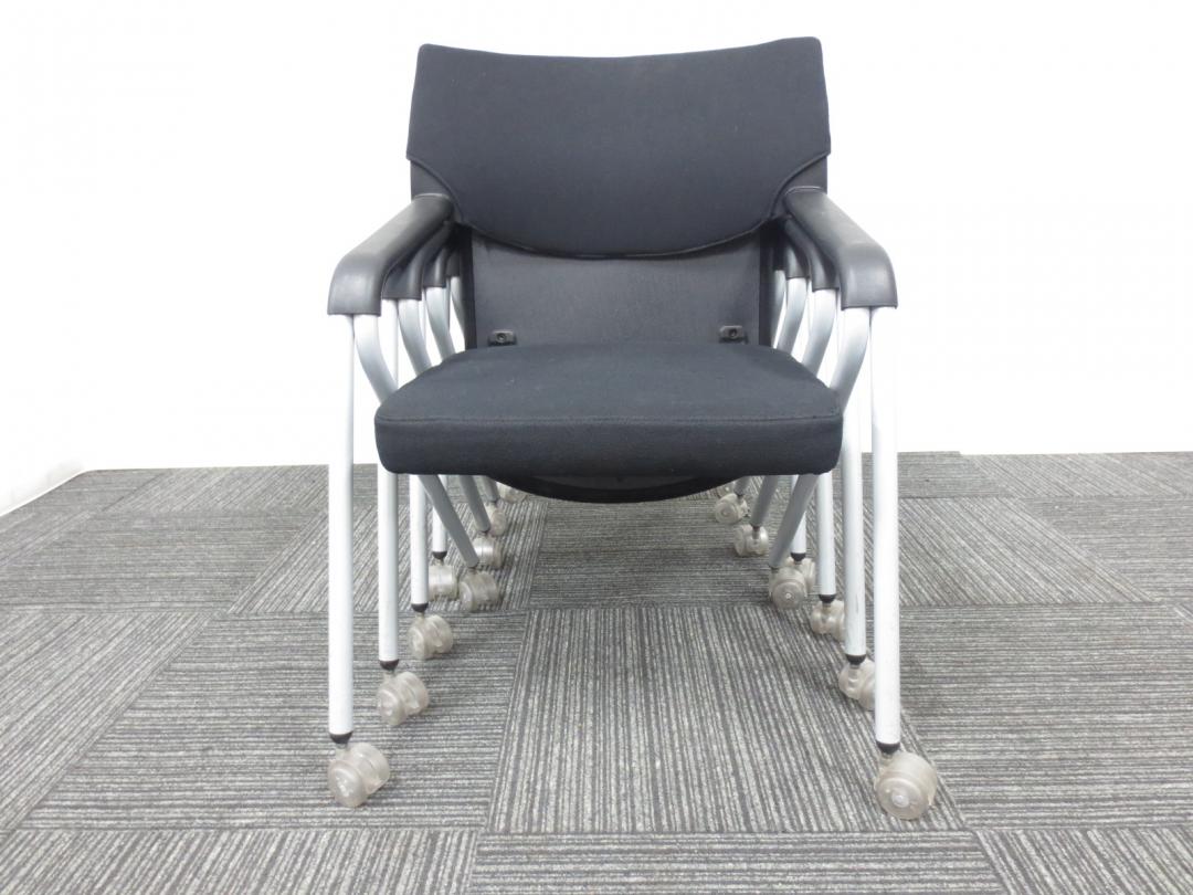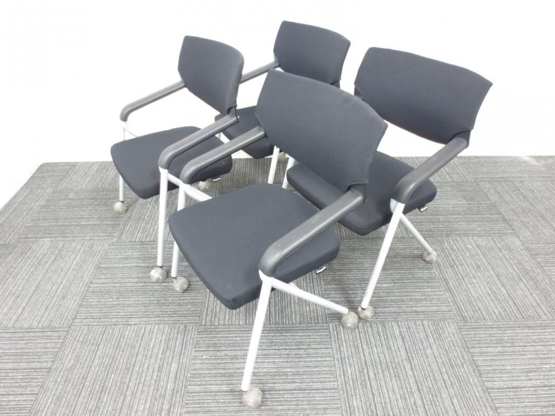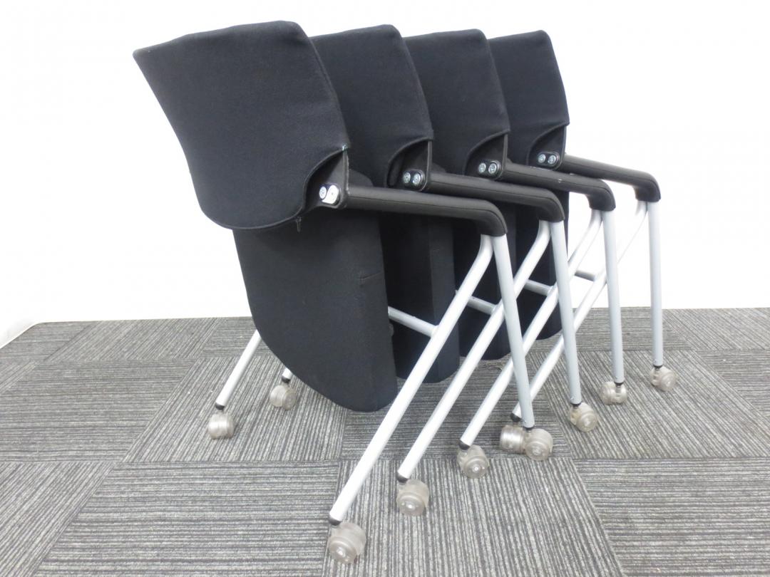【専門業者によりクリーニング済み】【レア商品!当店一押しのミーティングチェア】Dauphin (ドーファン)製|ネスティングチェア|4脚セット商品【座面が広くゆったりと座れて肘かけ付です】- 春日部・越谷店