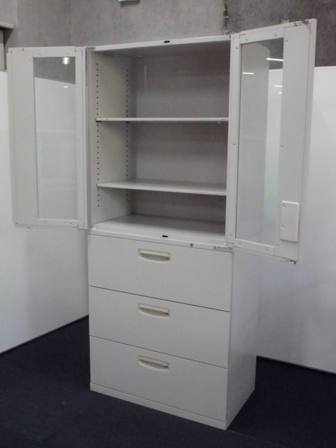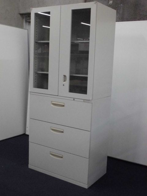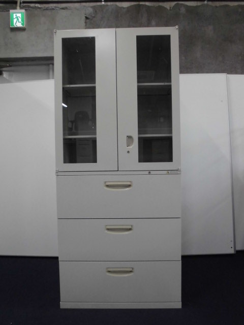 上段はガラス戸両開き(観音開き)+ 下段は3段ラテラルの書庫セットです!