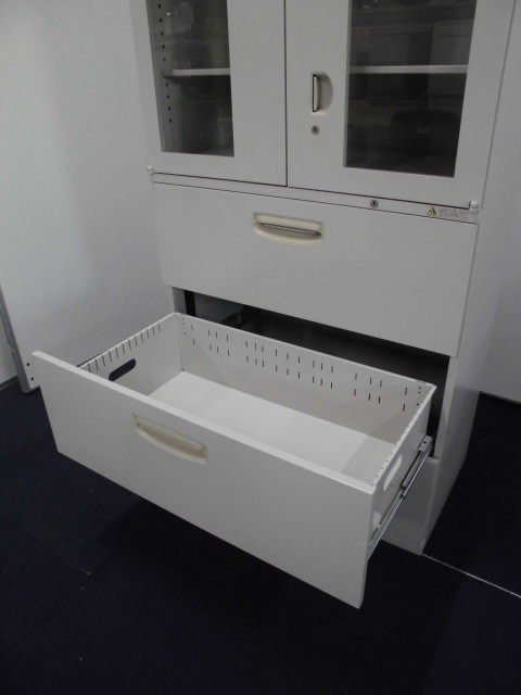 - 一部不具合ありそ引出の開閉不可、施錠不可、棚板無しといったの書庫の本来の効用を果たすための機能以外の一部が使用不可(例、扉、引出の開閉がしづらいなどがある。 )