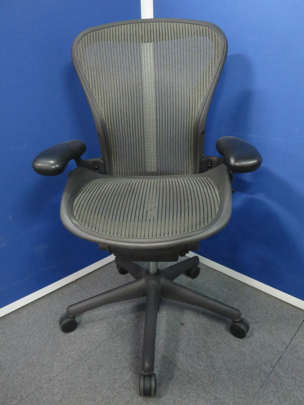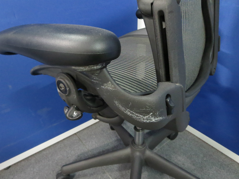 【★状態イマイチのためお安く!】■ハーマンミラー製 アーロンチェア Bサイズ 固定肘 ※キズあり・ランバーサポート無・昇降ガス圧弱めのためお安く!【訳あり特価品】