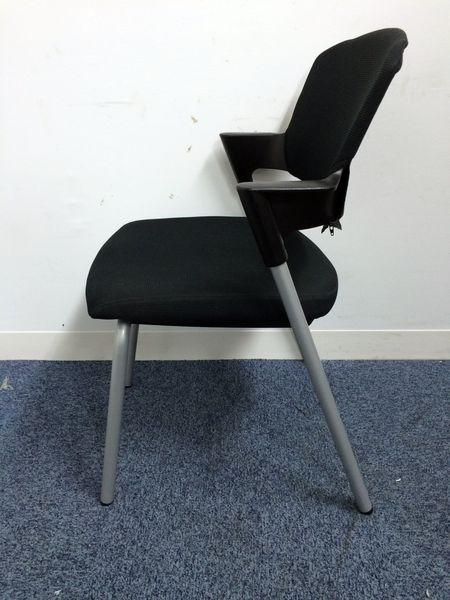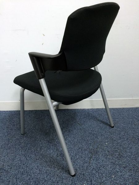 【シンプルスマートなスタッキングチェア!分厚いクッションで長時間でも快適な座り心地!】■スタッキングチェア 肘付ミーティングチェア ■固定肘 ■キャスター付 ■ブラック ■背面樹脂/コクヨ(KOKUYO/プロッティ