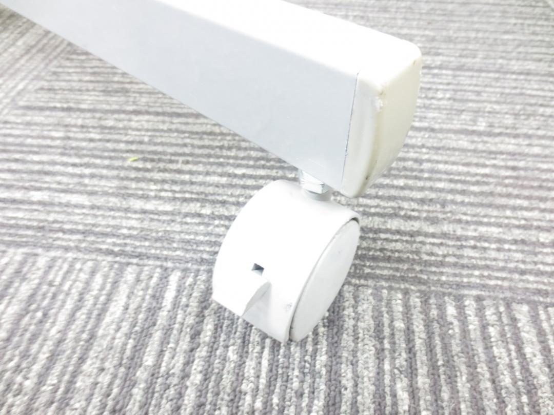 - 一部不具合あり天板歪み、アジャスター無し、キャスター使用不可ようなそのテーブルの本来の効用を果たすための機能以外の一部が使用不可な状態。(例、キャスターロッ ク機能使用不可、棚板無し等がある。)