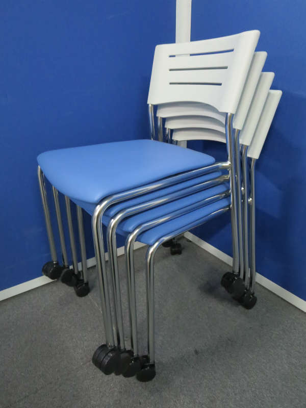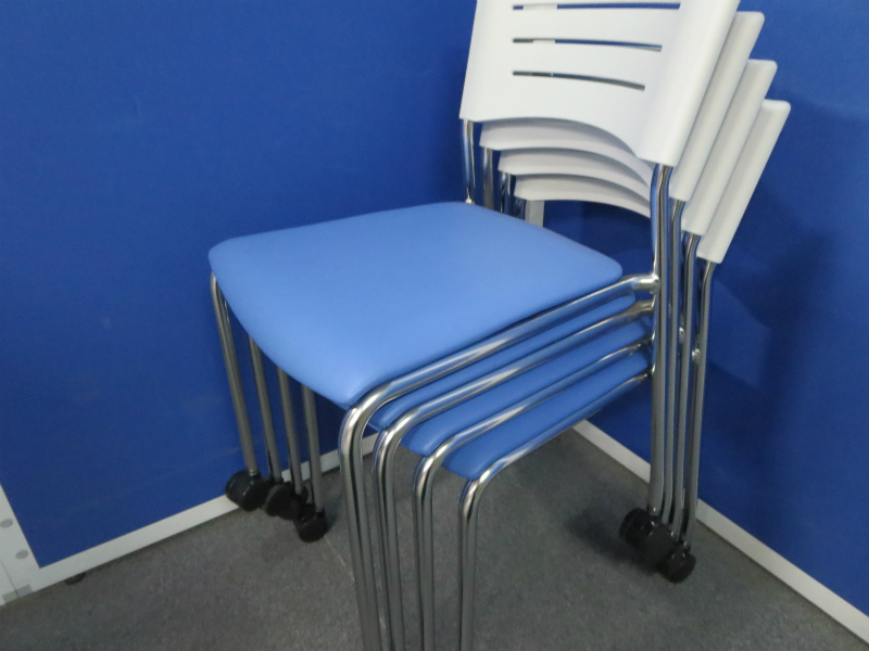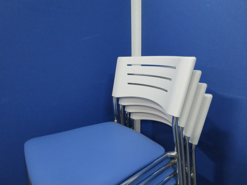 【背もたれホワイトのシンプルスタッキングチェア!】~状態良好嬉しい!4脚入荷!!~【中古オフィス家具】- 川崎店