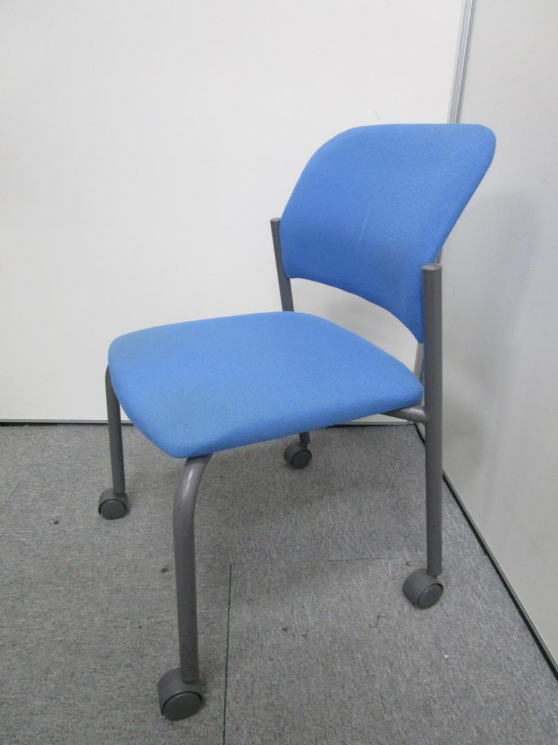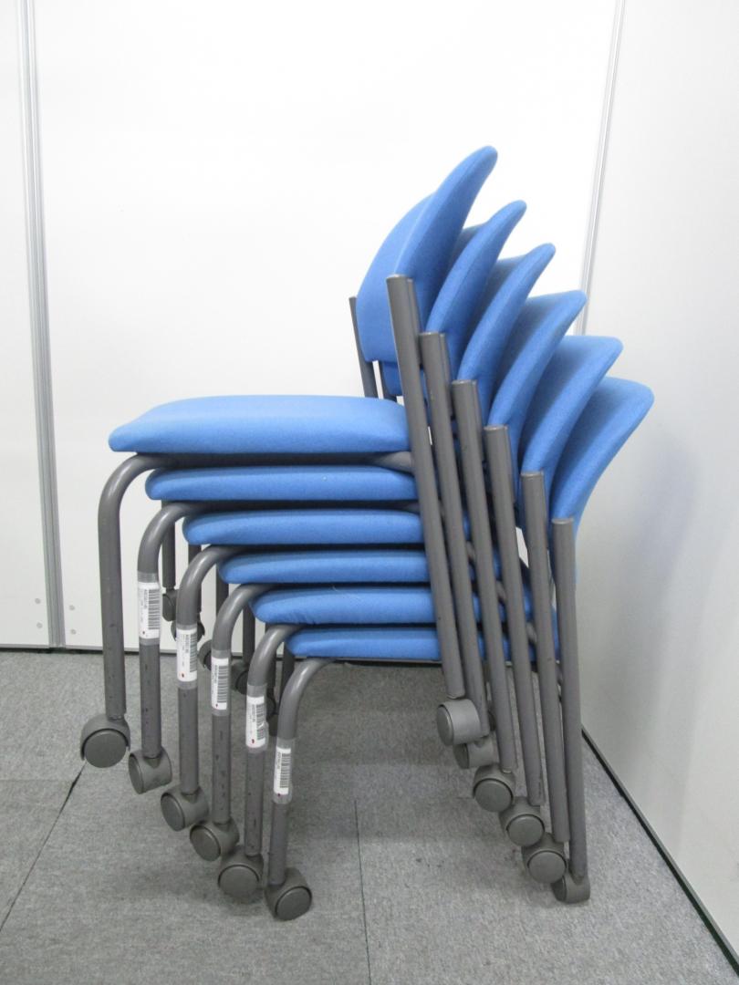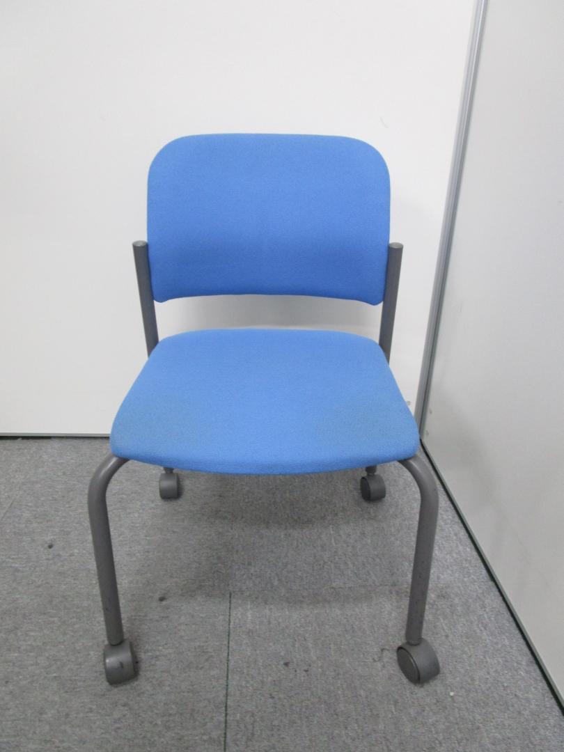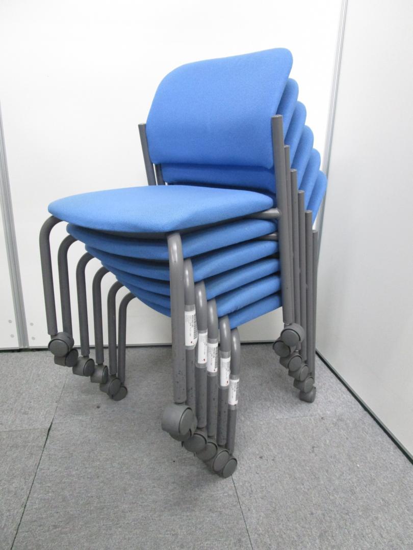 【4脚セット¥16000→¥14000】【コクヨ製CK−100 スタッキングチェア】■キャスター付き ■クッションタイプ ■ブルー- 池袋店