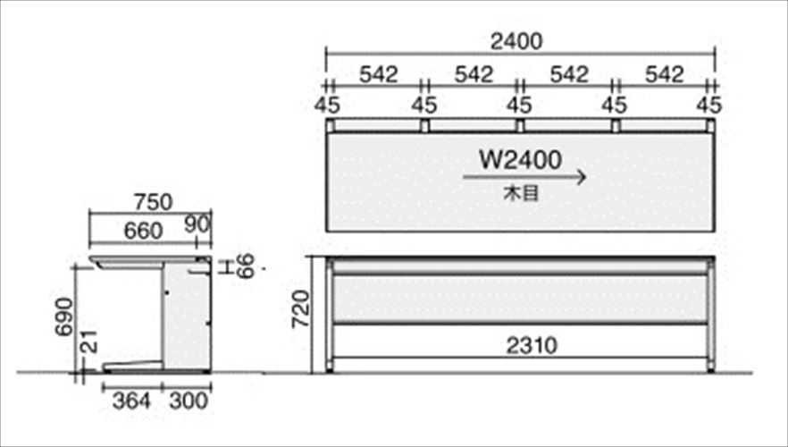 机下の高さが690mmとなっており、