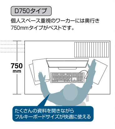 - ITに最適なスタンダードデスク。4種類の奥行きが選べ、天板も木目3種類とホワイト色から選べます。