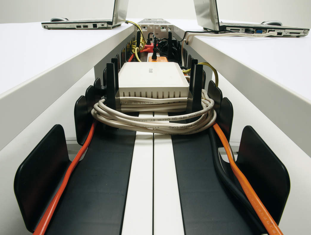 大型の平机であり、配線機能の高さも相まって、