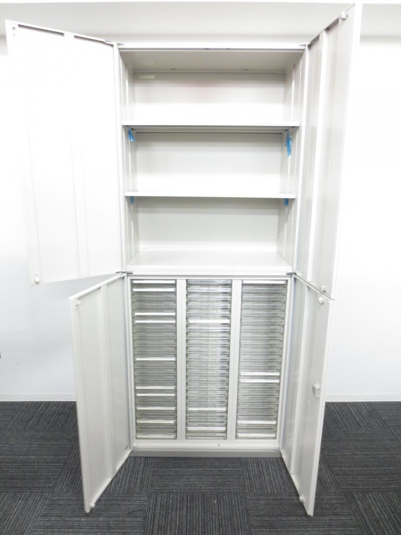 【希少セット入荷】【上下書庫セット】 イナバ製 上置き:両開き 下置きクリスタルトレー(3列22段)(薄型)- 春日部・越谷店