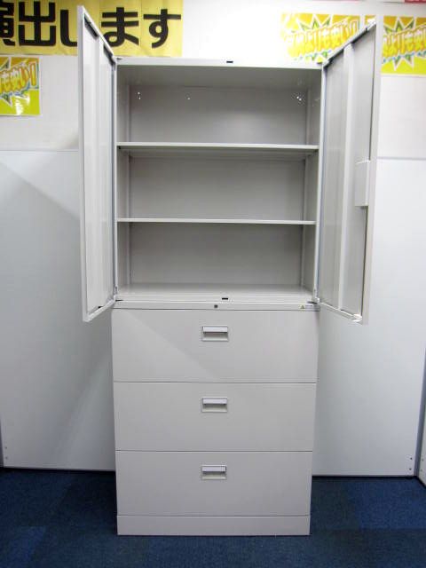【大人気】書庫セット 上段:両開き・下段:3段ラテラル【在庫1セット】ウィンターセール\26,000⇒\24,000在庫がある店舗一覧