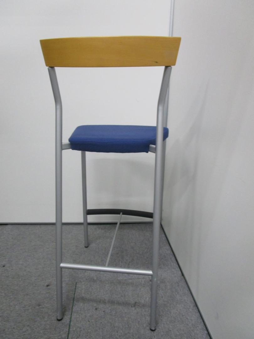 色は座面ブルー、背もたれは木製で自然な風合いを演出してます。