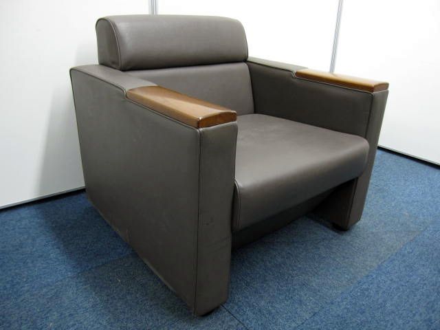 肘掛けも一部木部材を使用しているので、いわゆるビニールレザーの安価な感じでは無く