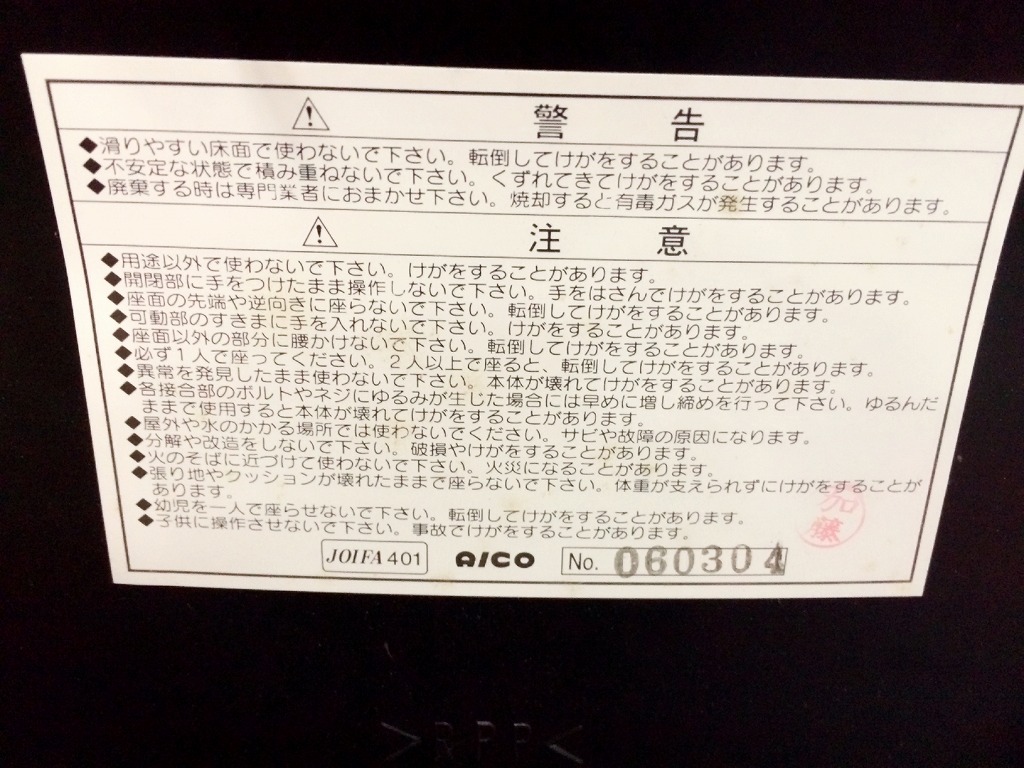 - 一部不具合ありそのチェアの本来の効用を果たすための機能以外の数か所が使用不可の状態にある。(例:背もたれロック不良と奥座調整等の内数カ所)