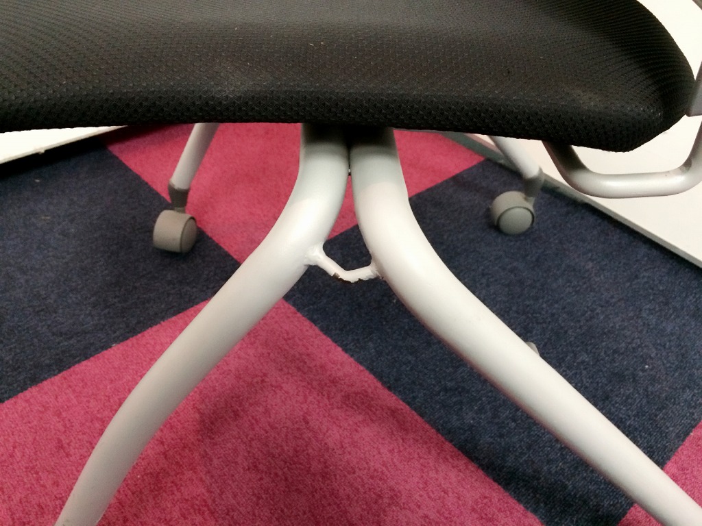 - 不具合多数そのチェアの本来の効用を果たすための機能に不具合ある。(例、オフィスチェアの上下昇降キャスター付きミーティングチェアのキャスター使用不可のような不 具合)
