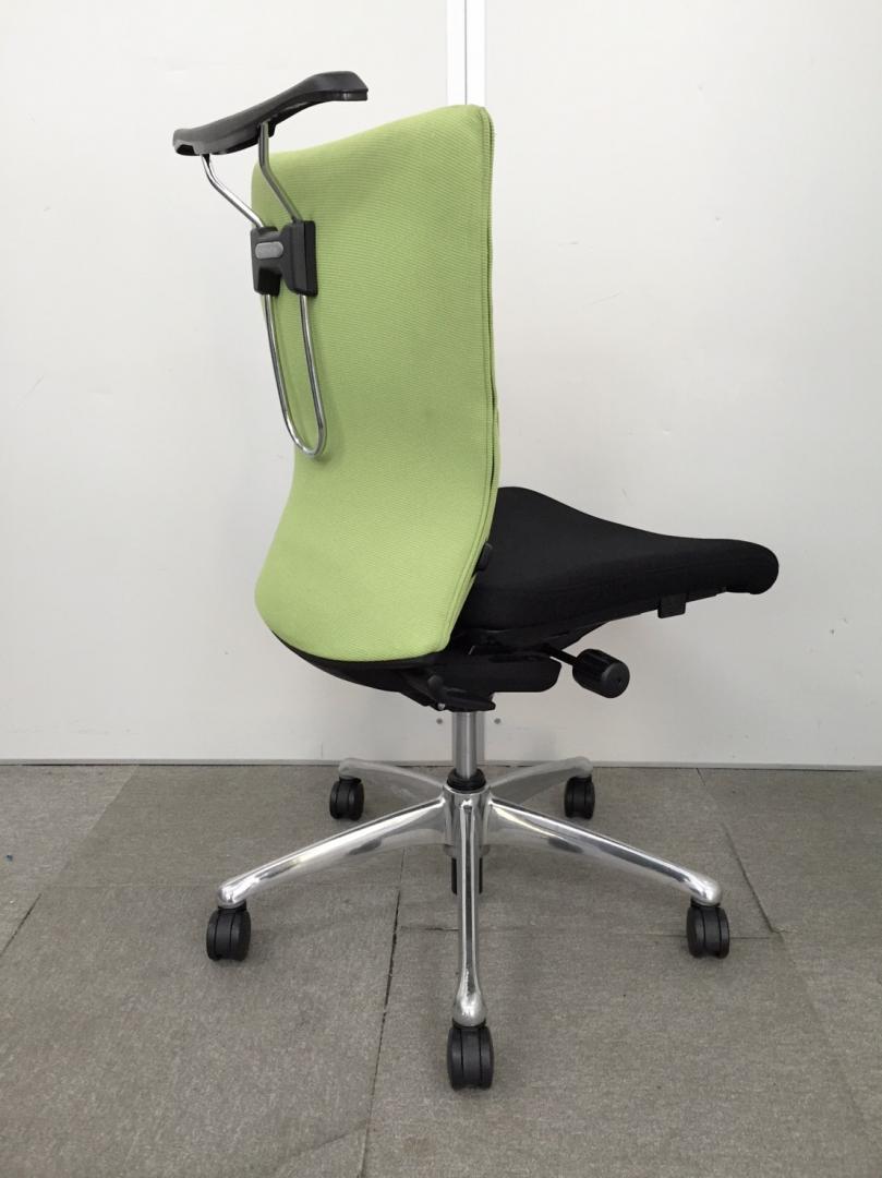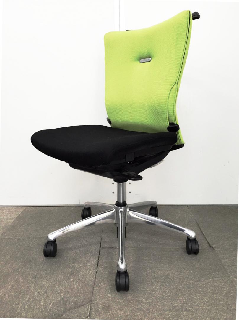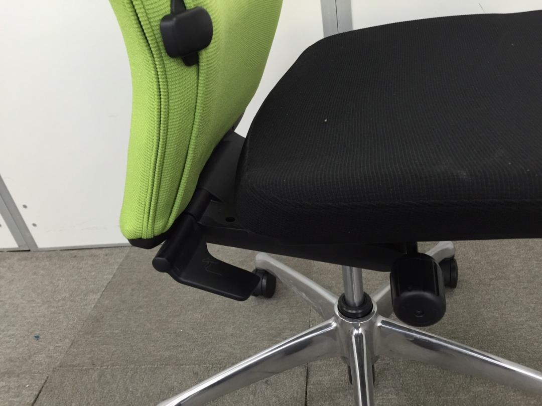 オカムラ製 フィーゴ シームレスタイプ ブラック×ライトグリーン【機能とデザインを兼ね備えたチェア】肘外し
