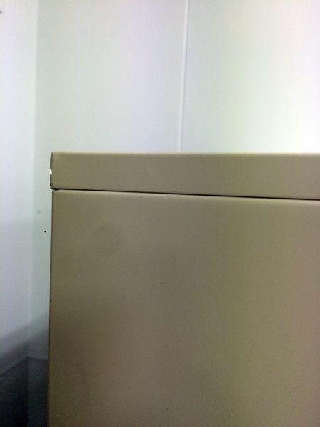 - かなり強い黄ばみ・変色が商品全体にある。(例、天板、正面、背部、サイド部分にある。)