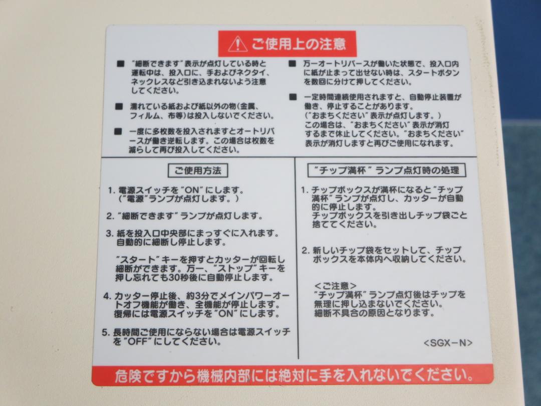 【中古】 SGX-R314P シグマ技研 シュレッダー 170052