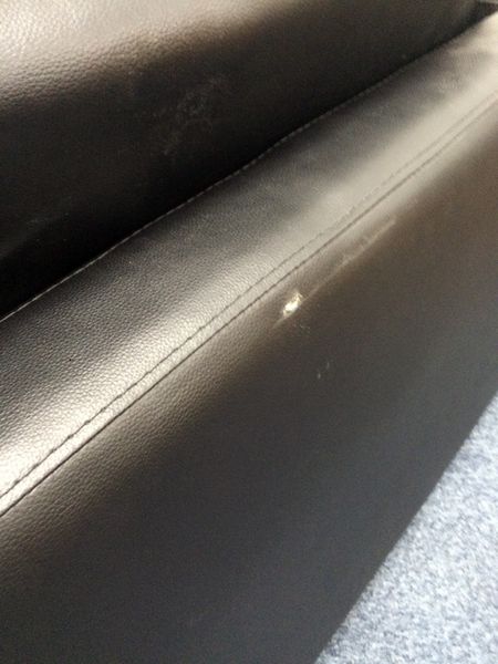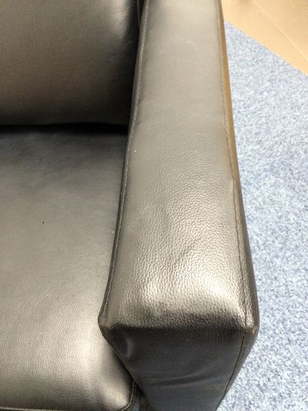 - あり黄ばみ・変色が広い範囲にうっすらある、または濃い黄ばみ・変色が一部ある。(例:三人用ソファ、二人用ソファ、一人用ソファの場合、背もたれ、肘かけ、座面等、 センターテーブルの場合、天板、脚にある。)