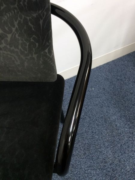 - かなり強い濃い黄ばみ・変色が商品全体にある。(例、座面・背もたれ、脚部等にある。)